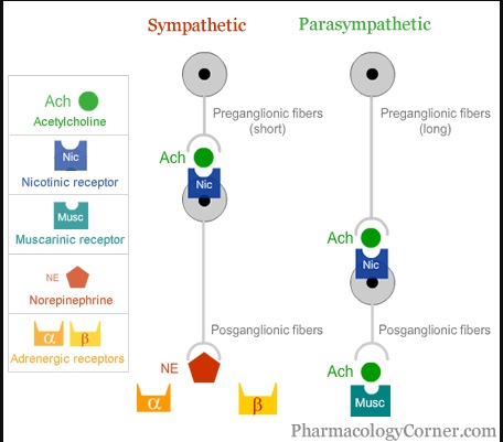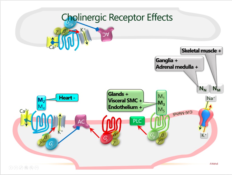 Motorcycle parking spots: muscarinic acetylcholine receptors (M1, M2, M3) (smooth muscles):