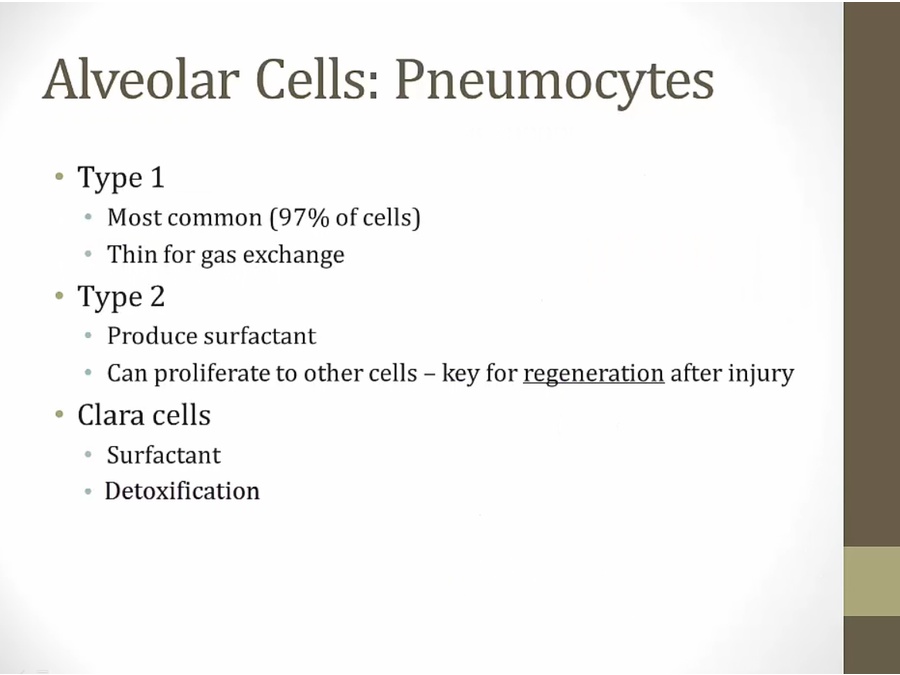 clara: not in alveoli, in terminal bronchioles