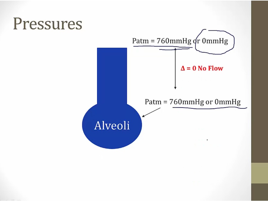 at end of expiration/inspiration, no movement of air, pressure equal