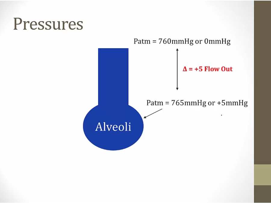 exhale: pressure inside becomes positive, drive air out