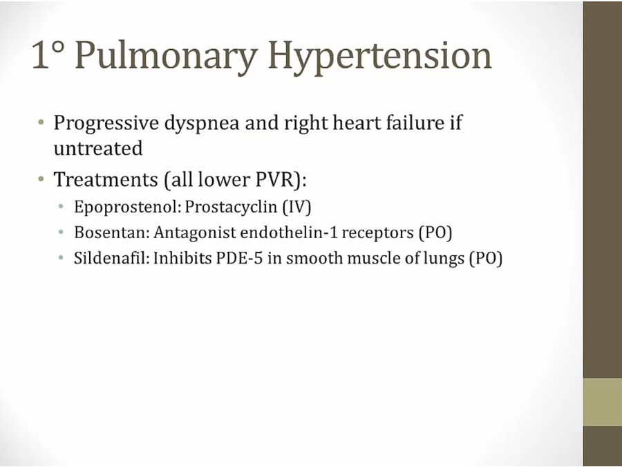 Epoprostenol: IV, must infuse constantly, cumbersome