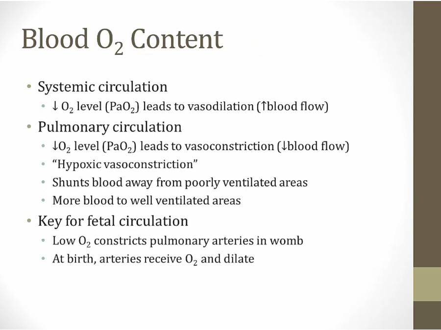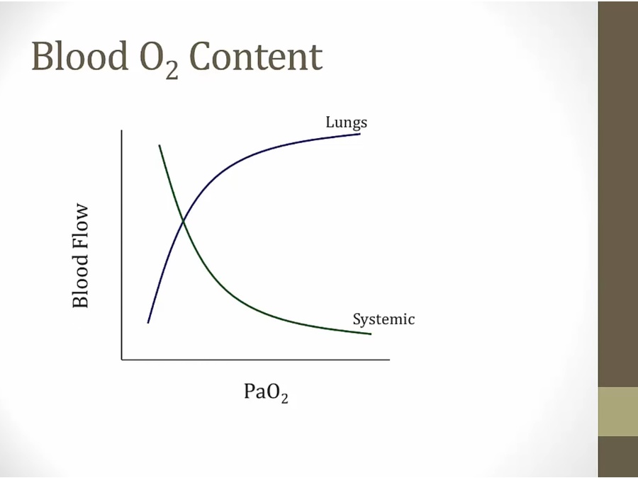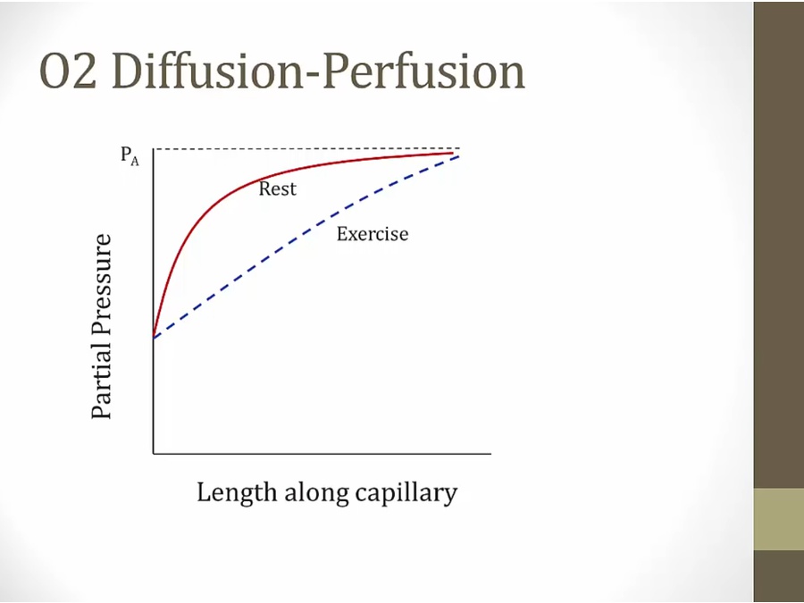 exercise: blood flow faster, gets further before reach maximum, but still does even in patients exercising