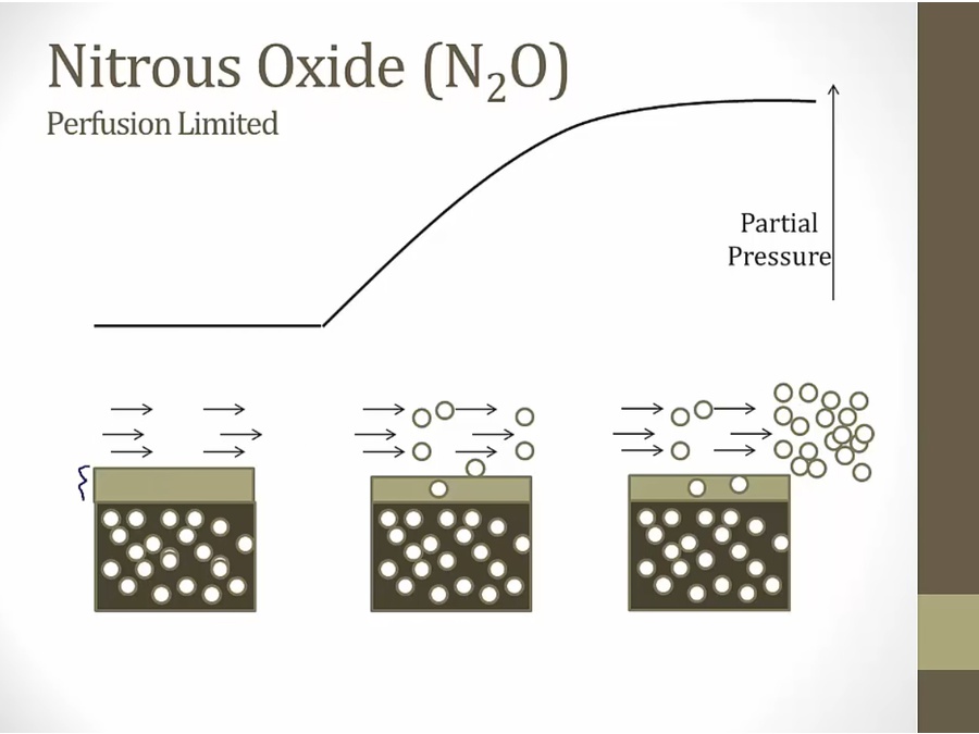 only determination for rate of rise of N2O is how fast blood flowing, carrying away molecules, rapid rise in partial pressure