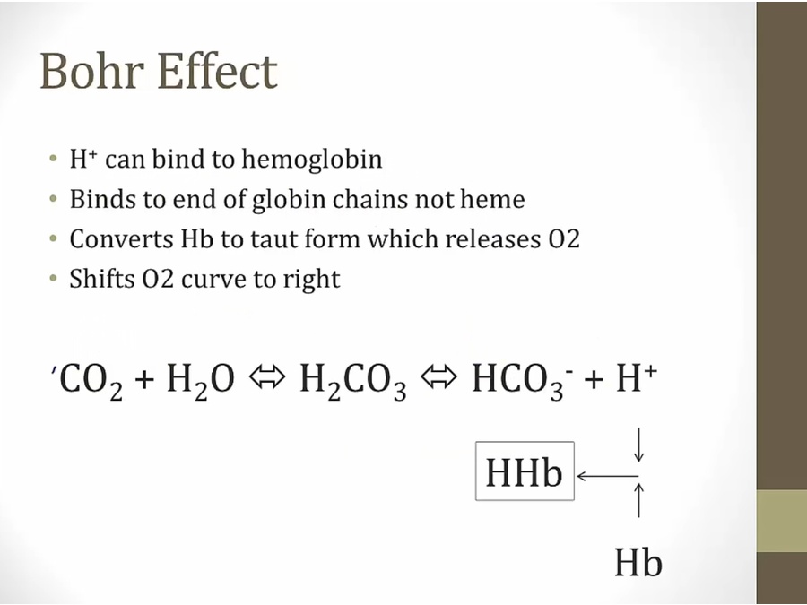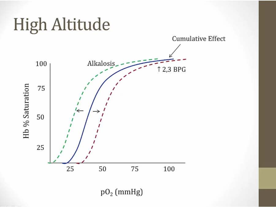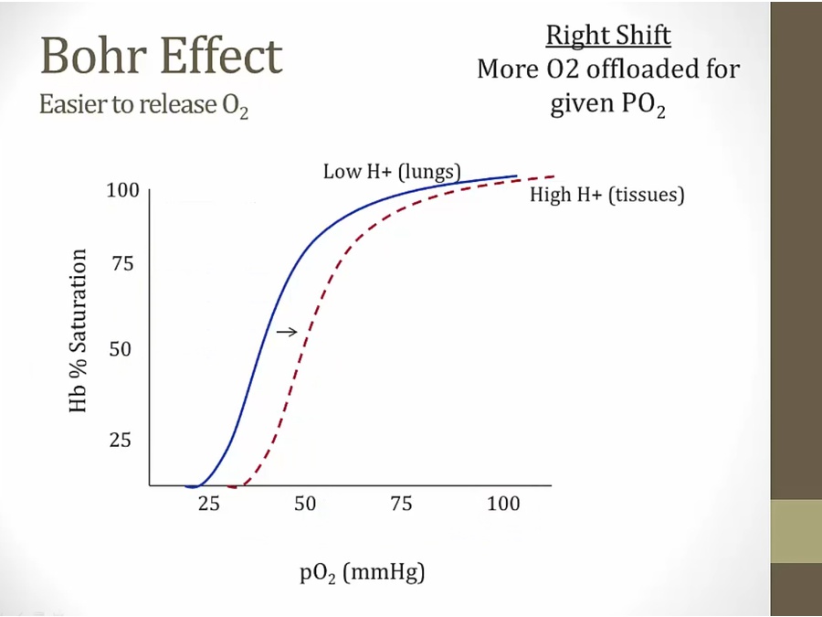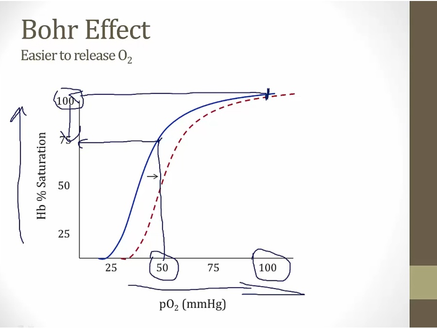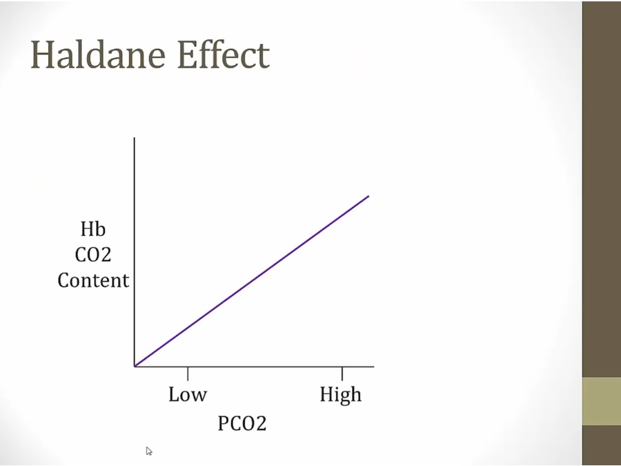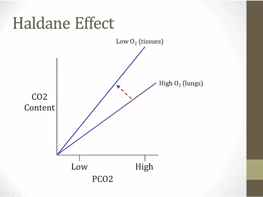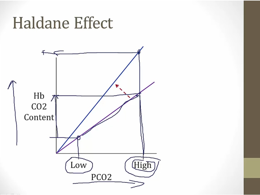 purple line: normally, more PCO2 in blood = more bound to Hb