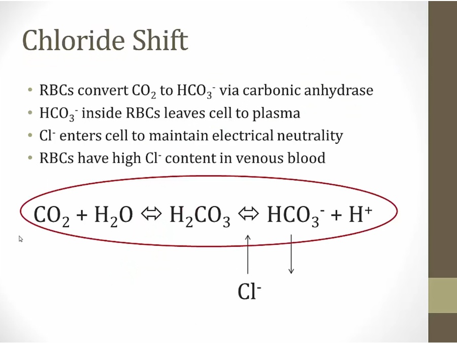 high bicarb inside cell diffuse out, in exchange for Cl