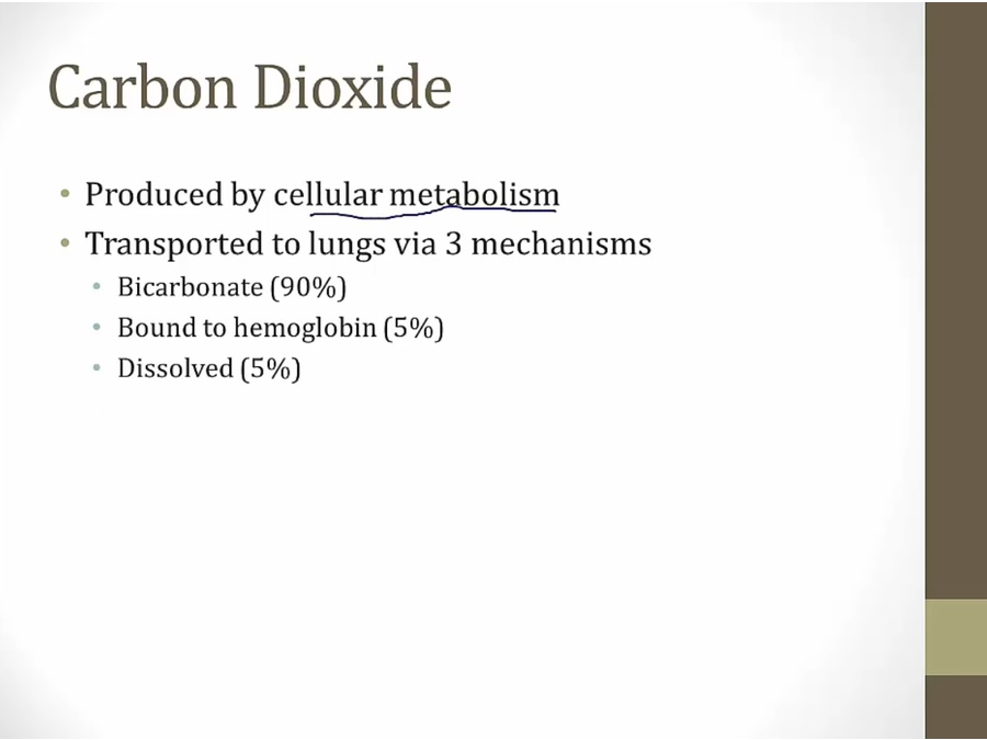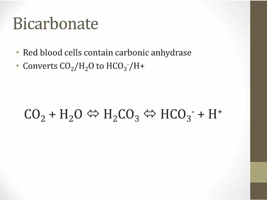 CO2 stored as HCO3 to be transported to lungs