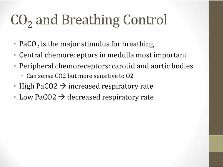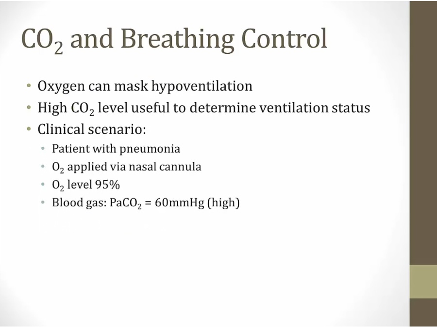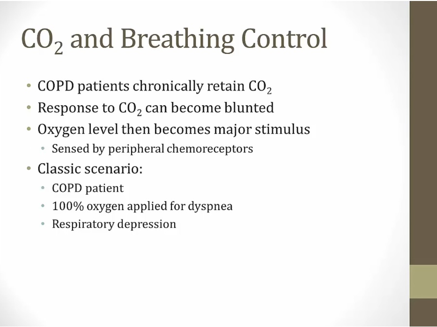 hypoxemia stimulate respiratory rate, can get low with O2 = high CO2, confusion