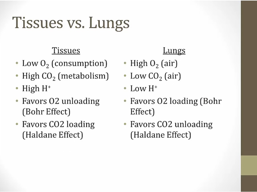 Bohr effect helps unload O2 via H ion binding to Hb