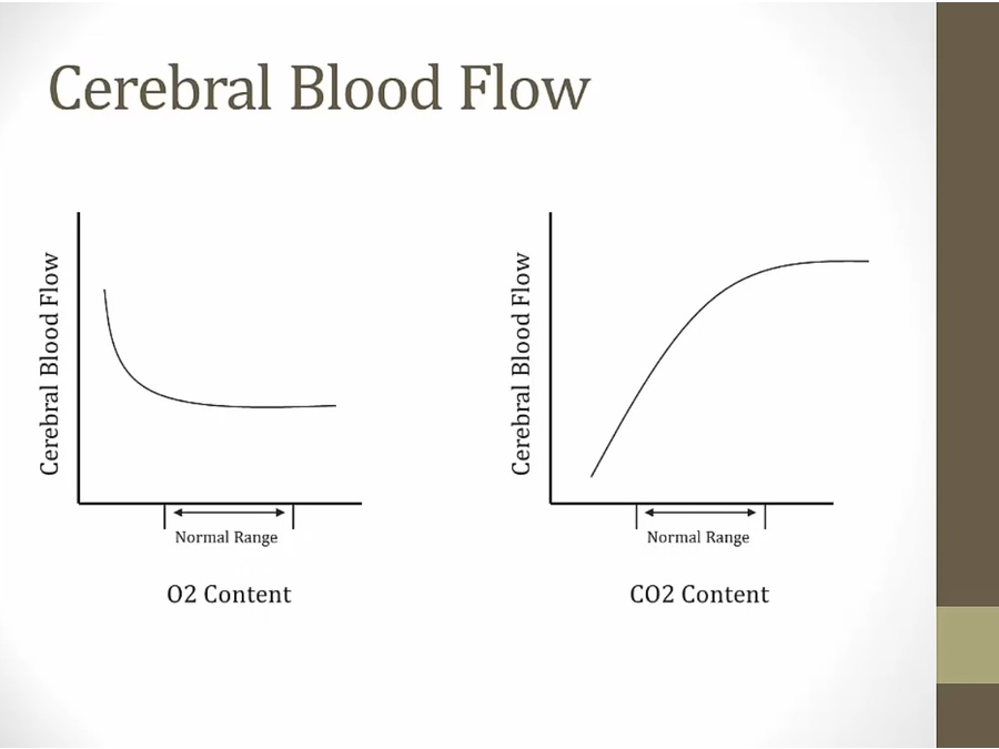 left, O2: at normal range, O2 does not change cerebral blood flow much