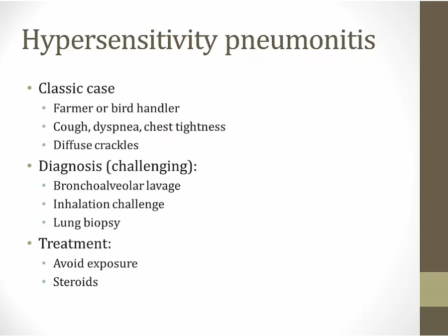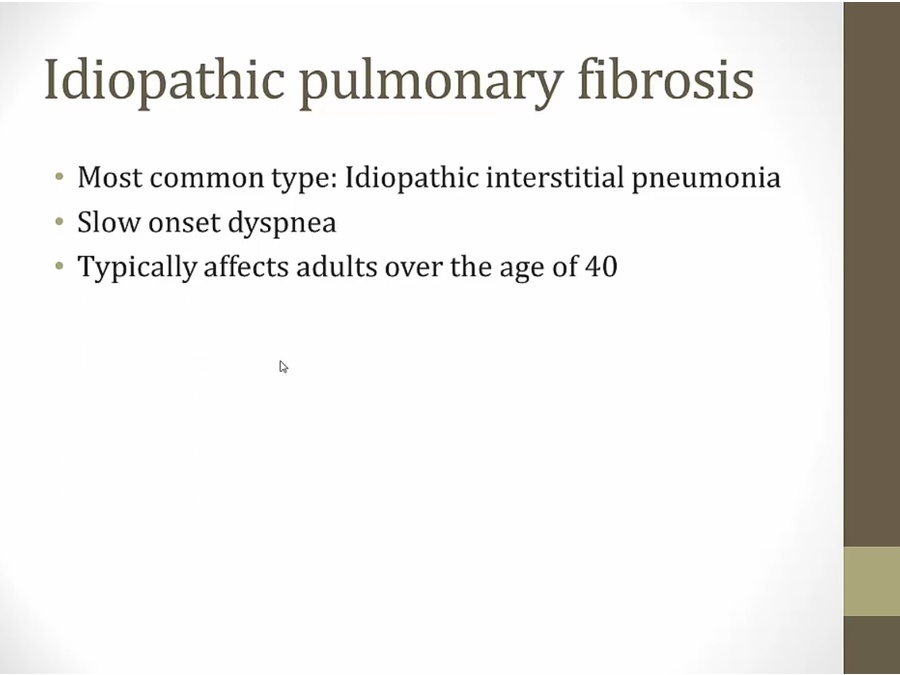 IPF: fibrous tissues diffusely laid down in lungs, hard to breath