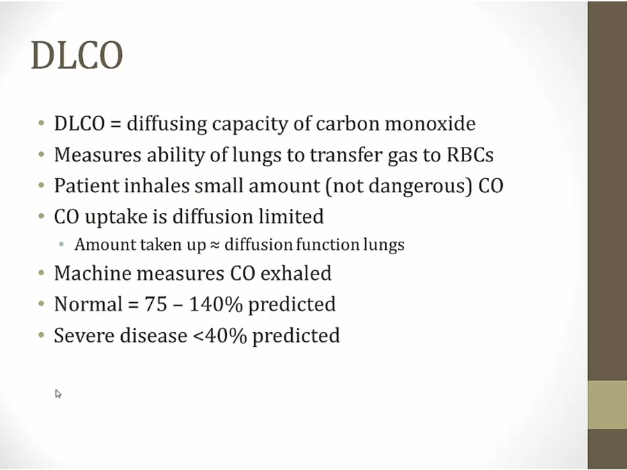 emphysema: destruction of alveoli, low DLCO
