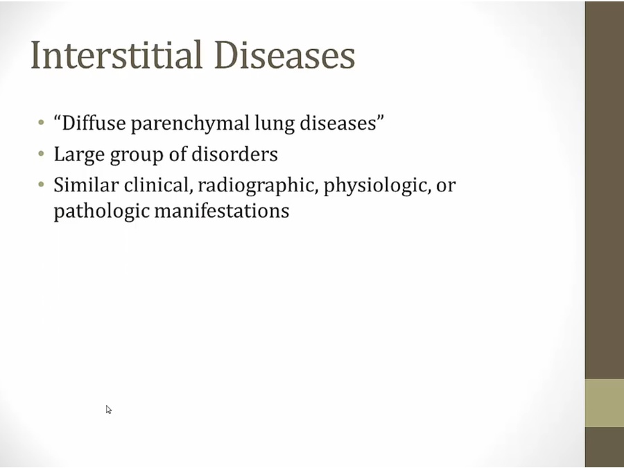 pathologic process starting in interstitium, misleading because often involves destruction of alveoli