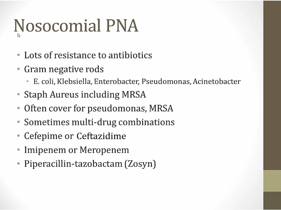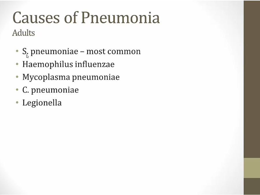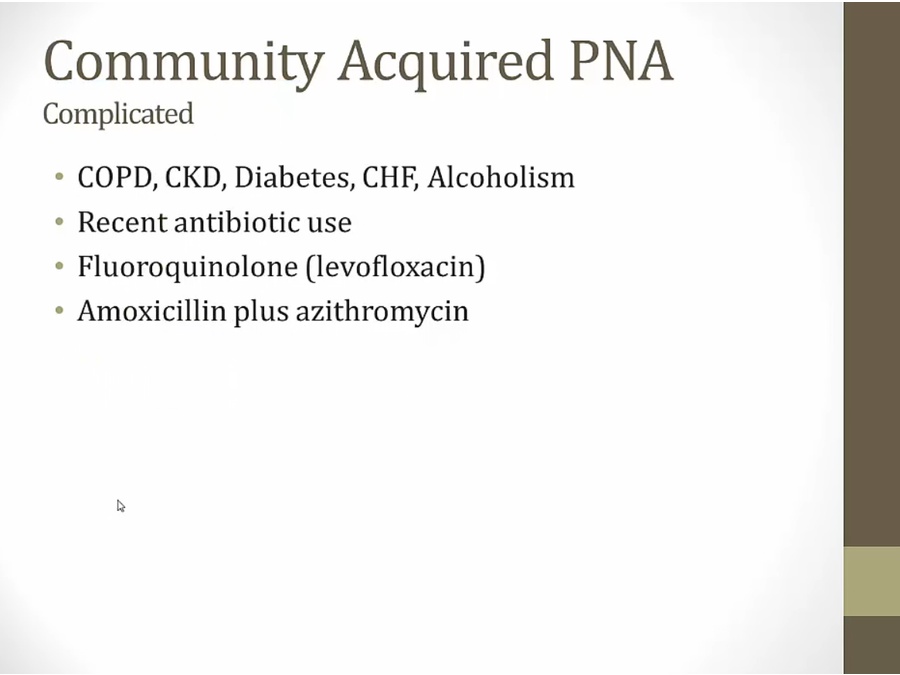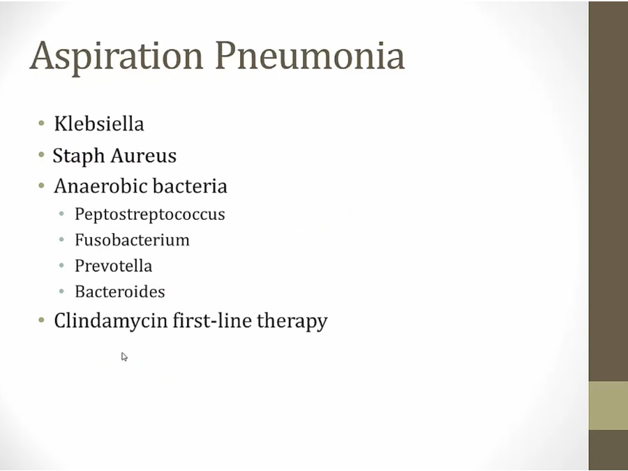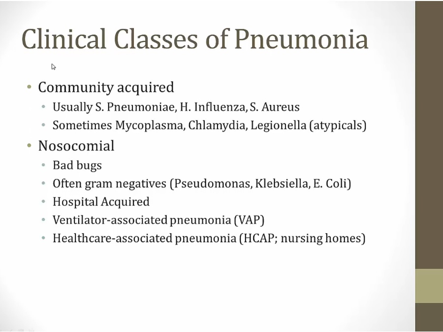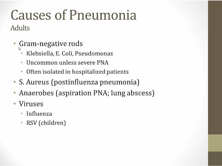 staph aureus, H. influenza, pseudomonas, moraxella, legionella