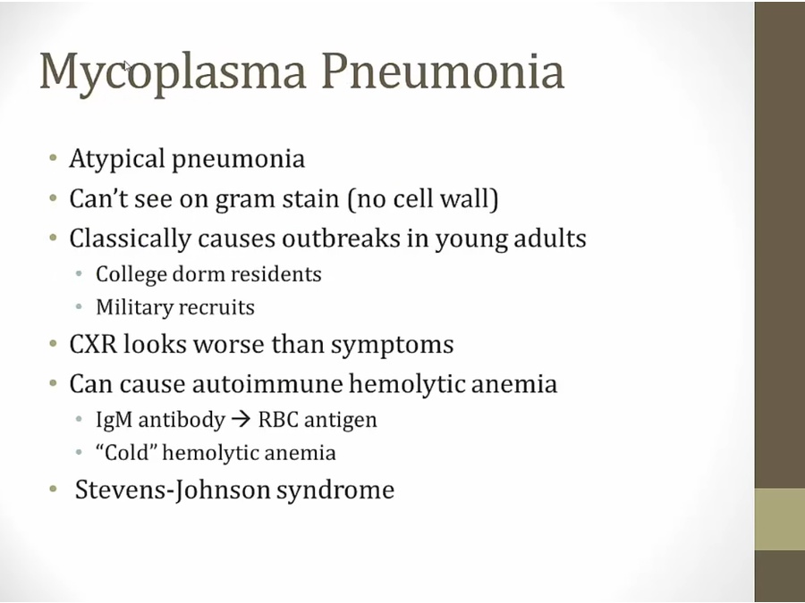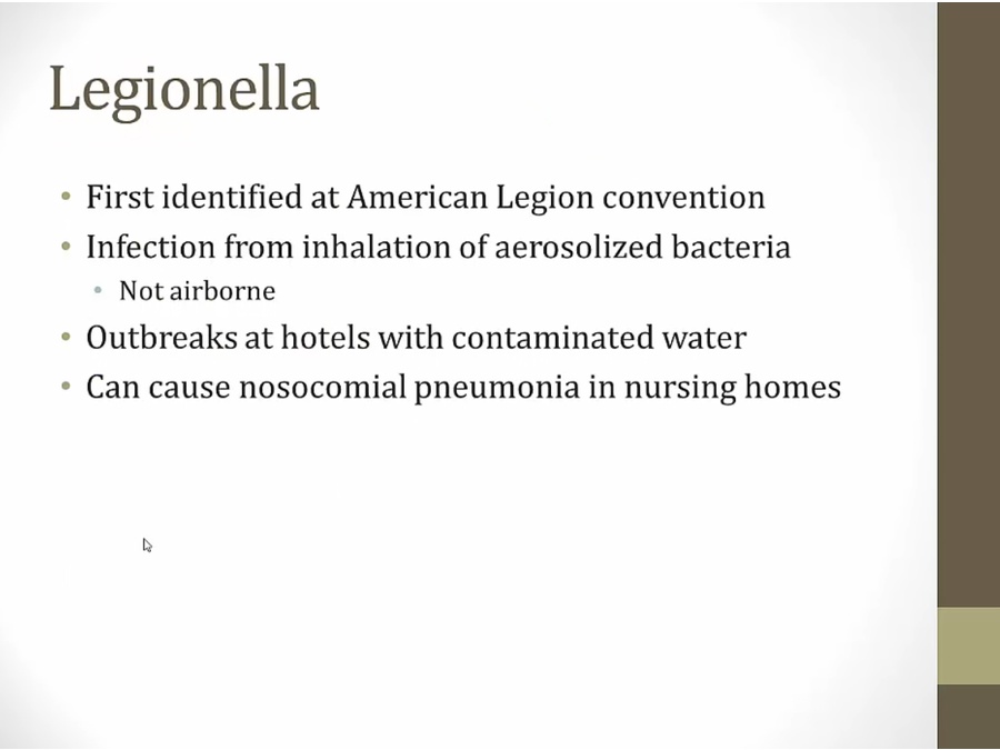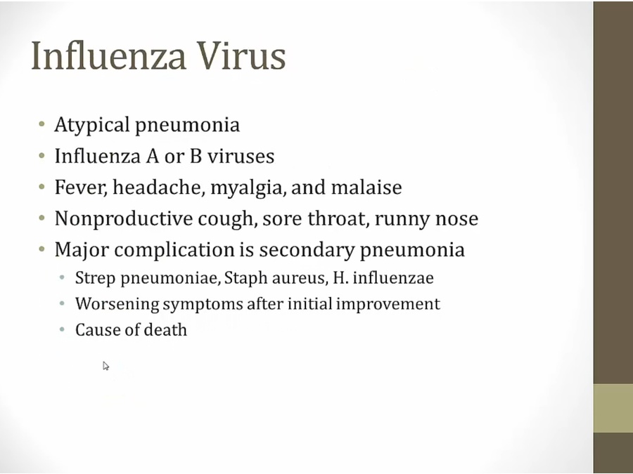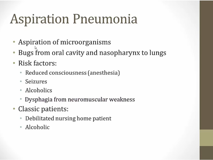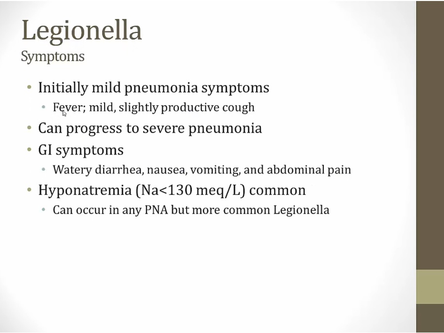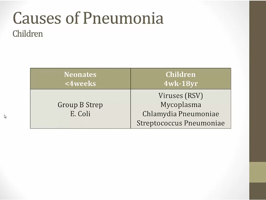 staph aureus, H. influenza, pseudomonas, moraxella, legionella