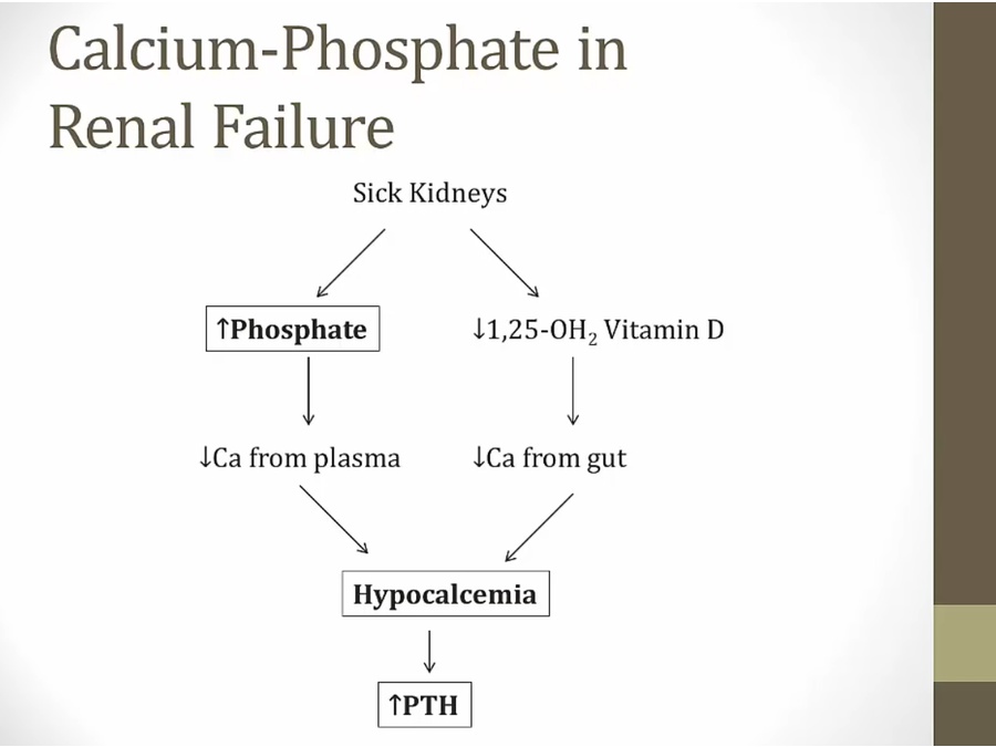 renal failure: increase phosphate from unable to excrete