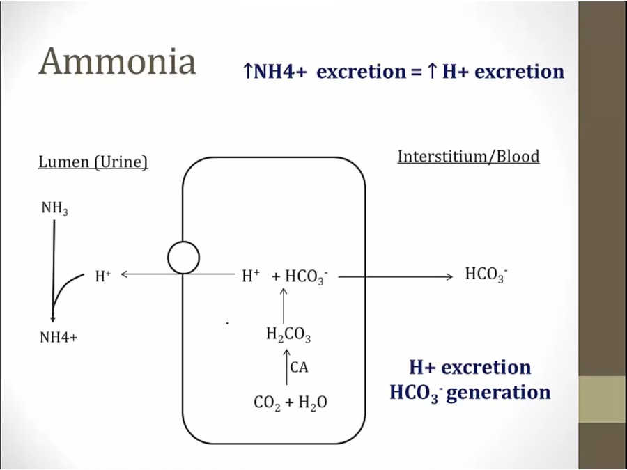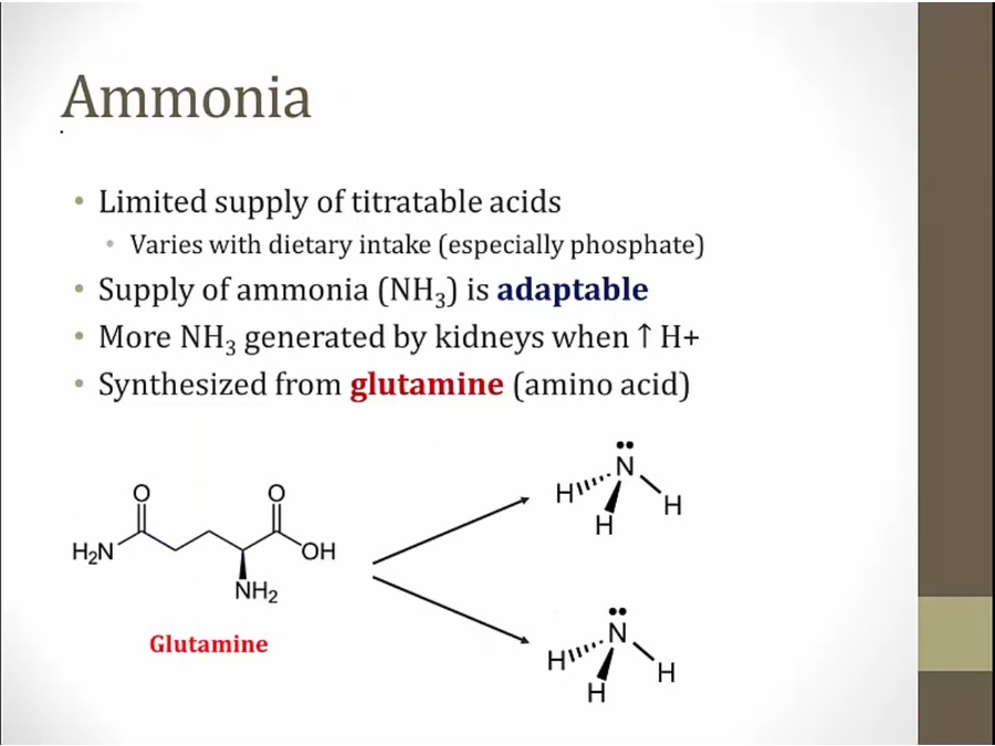 in setting of acidosis, more tit. acids and NH4