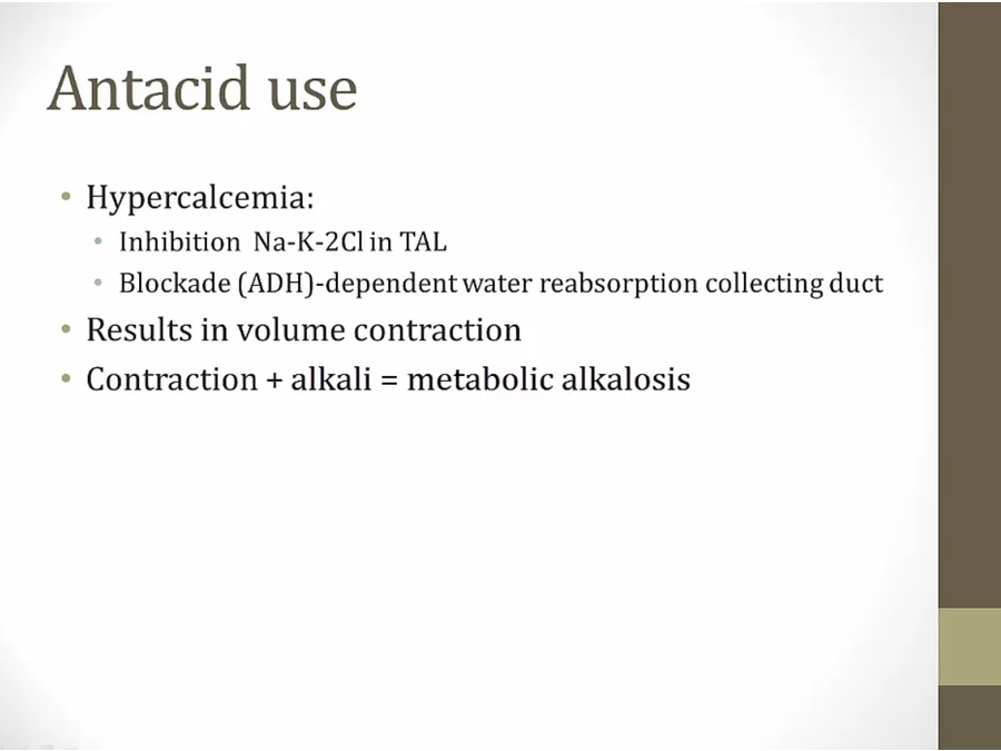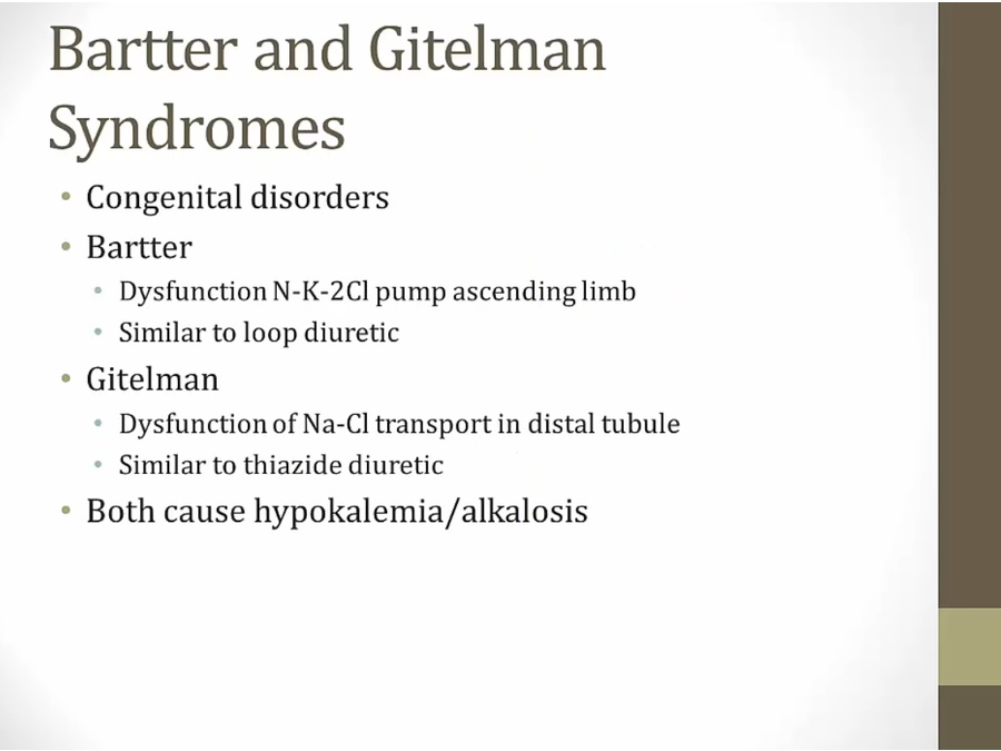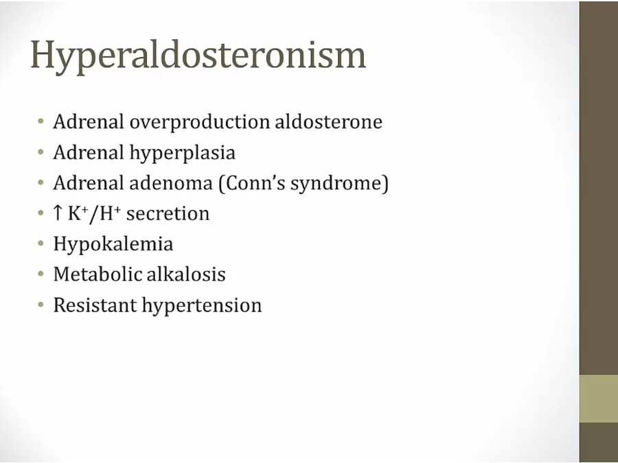 increased Na delivery to CD, increased aldosterone, increased K/H secretion = hypokalemia, alkalosis