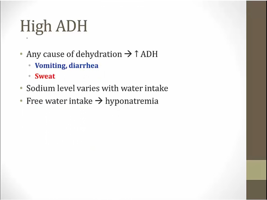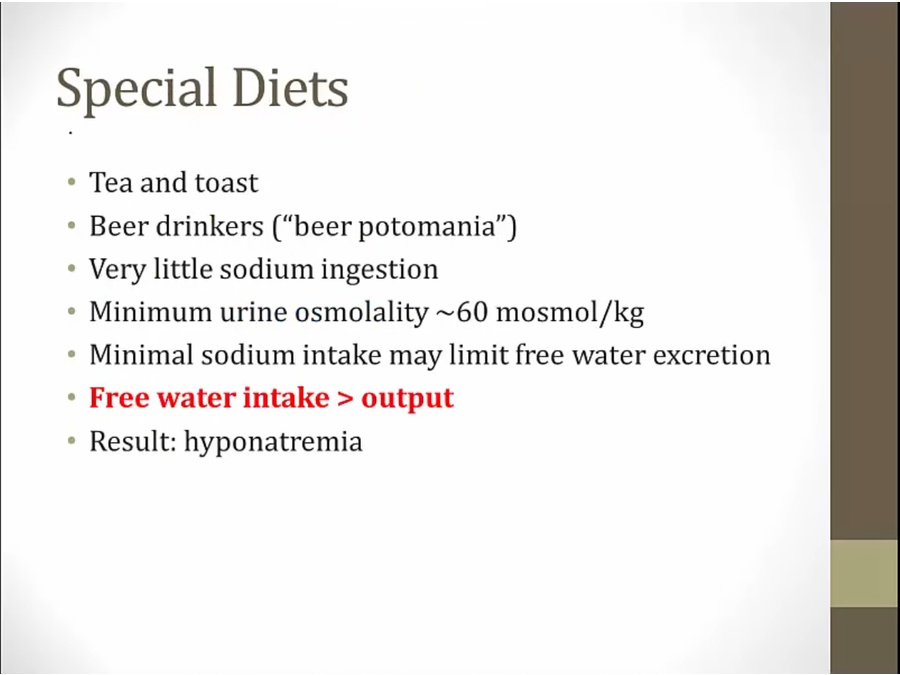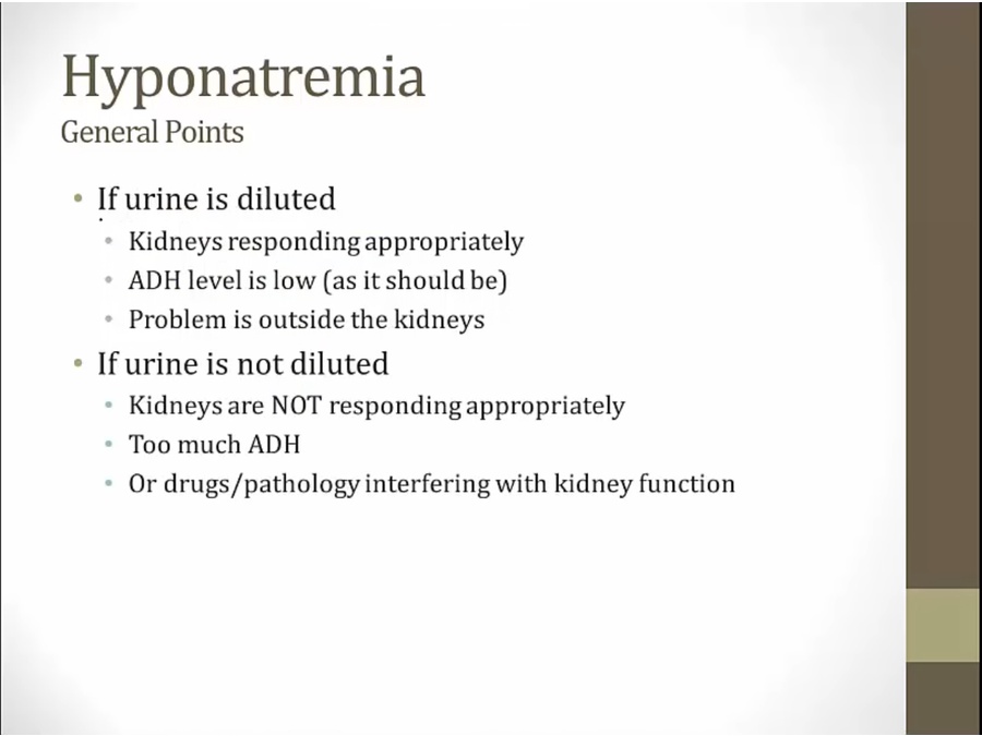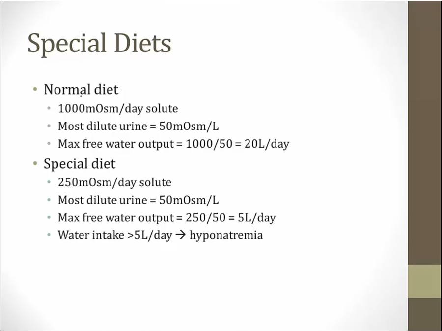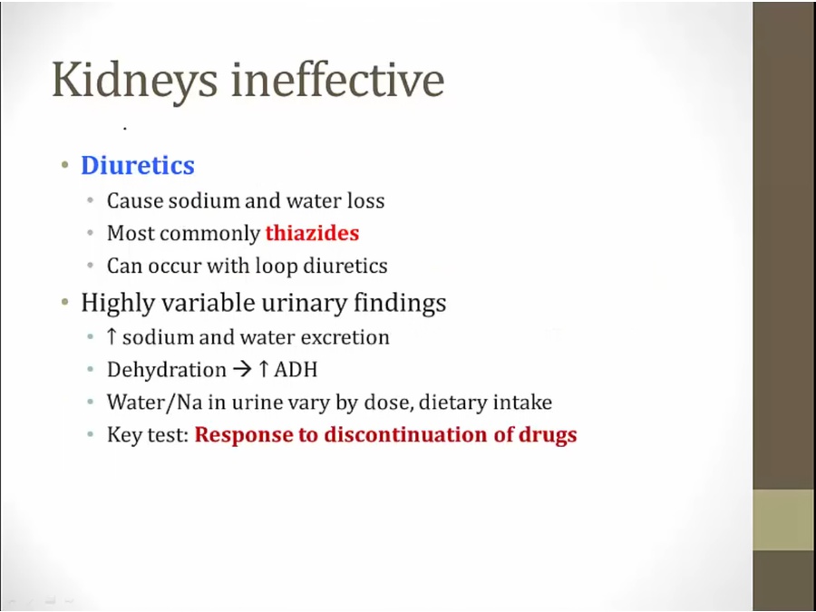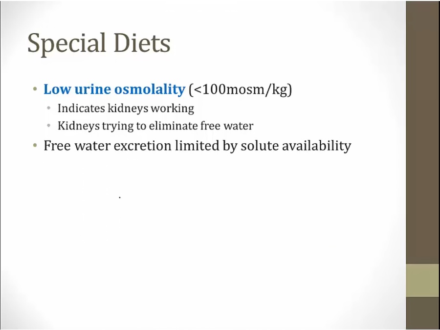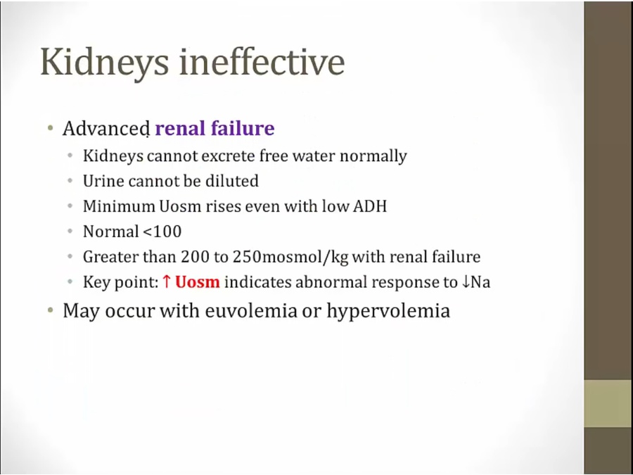 renal failure: concentrated urine even at baseline. Can't excrete water