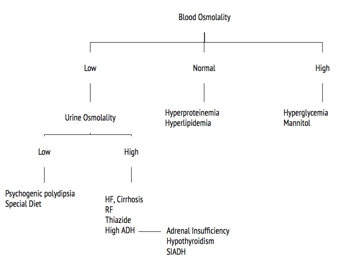 urine Na < 10: extrarenal including CHF, cirrhosis, nephrotic syndrome