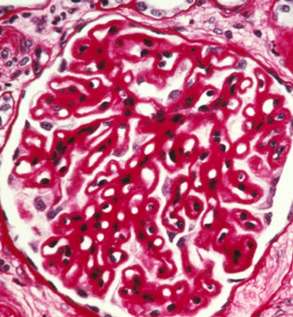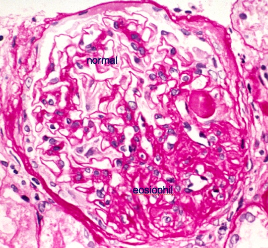 podocytes walled off from cellular components, no inflammation, no nephritic