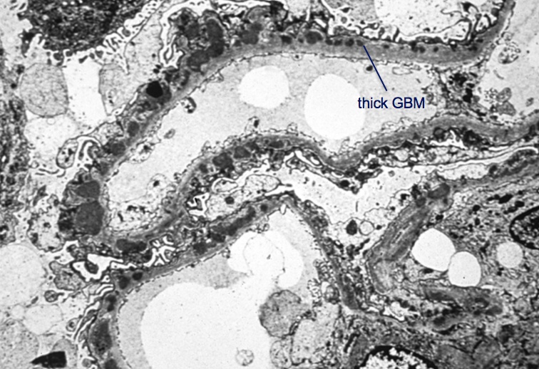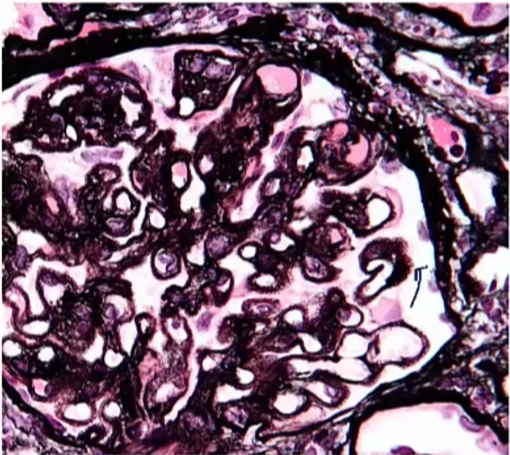 3 string: Associated with membranoproliferative glomerulonephritis. Tram track appearance