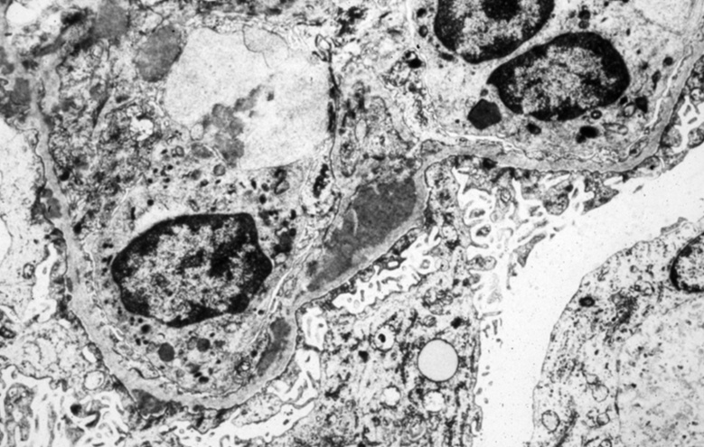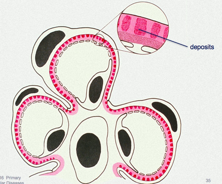 electron dense deposits in basement membrane