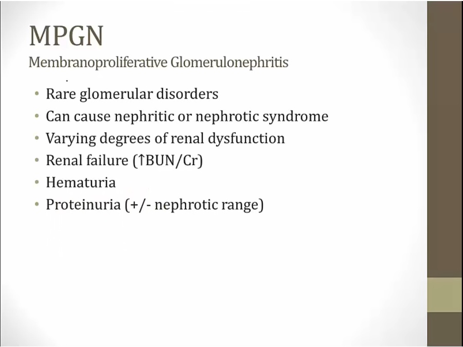 some element of renal failure (increase in BUN/Cr), hematuria, proteinuria