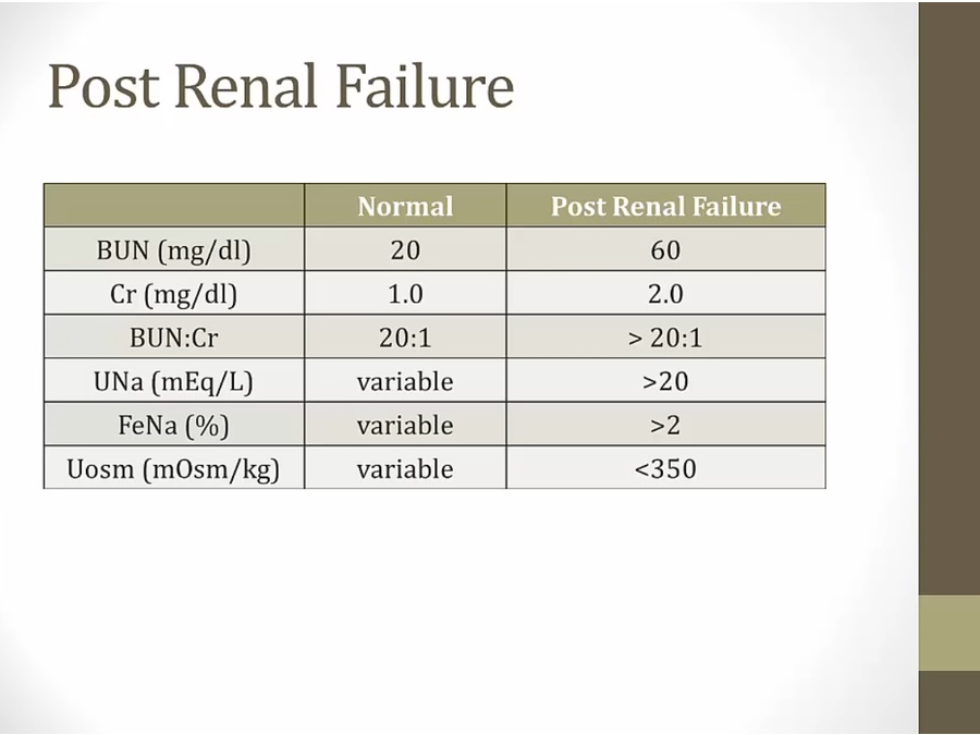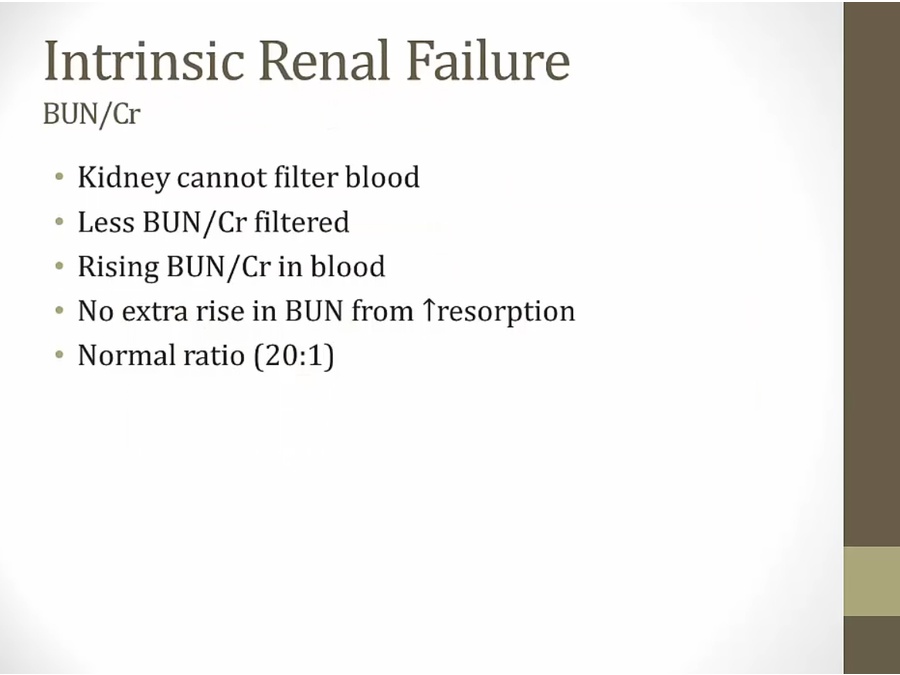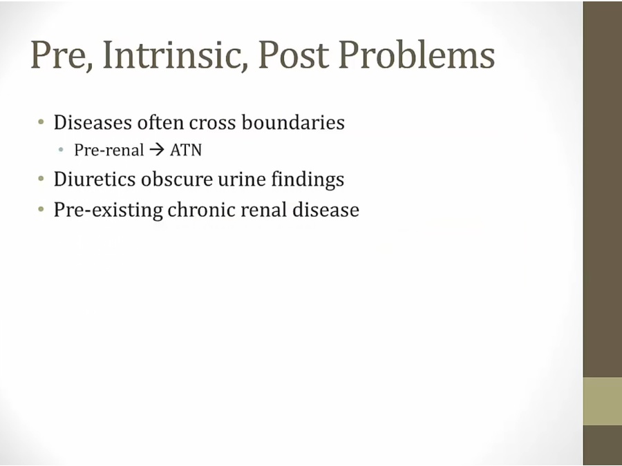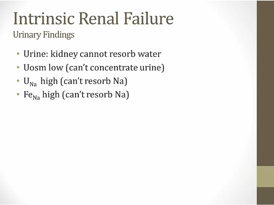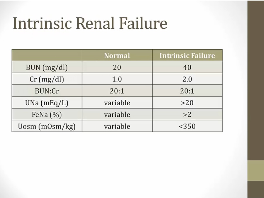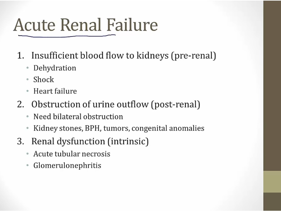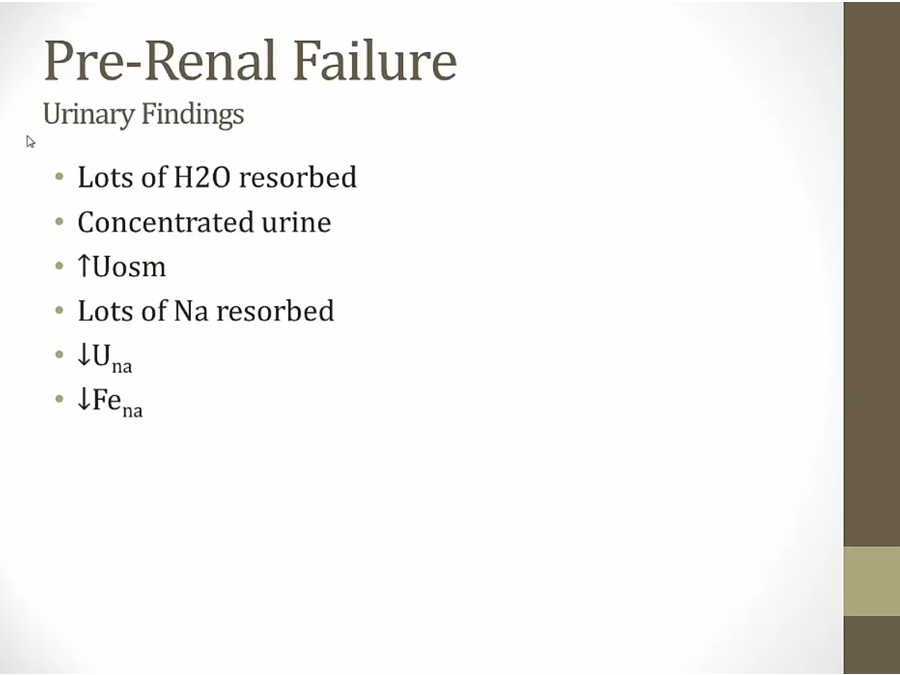 dehydrated: initially pre-renal failure, severe then progress to ATN