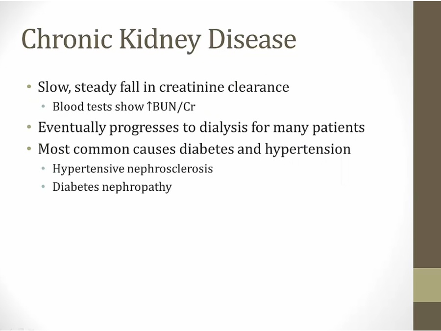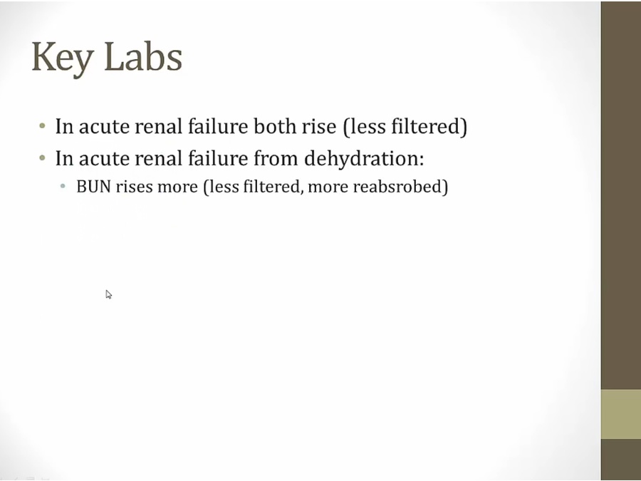 rising levels of BUN and Cr, filtered by the kidney, will rise in blood if kidney starts to fail