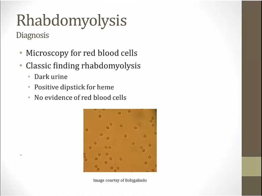 when urinalysis positive for heme, next step microscopy to see if RBC