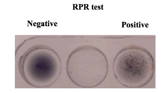 Nontreponemal tests (eg, Venereal Disease Research Laboratory [VDRL], rapid plasma reagin [RPR]) evaluate for the presence of antibody against cardiolipin (byproduct of treponemal infection). These tests are affected by antitreponemal therapy and can be used to follow disease progression and therapeutic response.