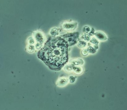 Visualization of pear-shaped flagellated trichomonads on wet mount