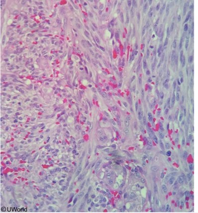 nuclear pleomorphism: some nucleus big, some small, dark blue