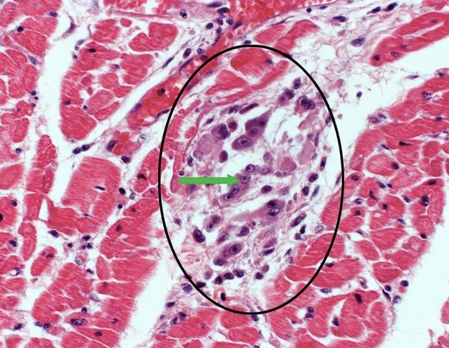 Evolution of a myocardial infarction occurs in several stages. The final stage of the healing process begins 2 weeks after infarction and involves increased type I collagen deposition. Fibrosis continues until about 2 months after infarction, resulting in a dense collagenous scar composed primarily of type I collagen.