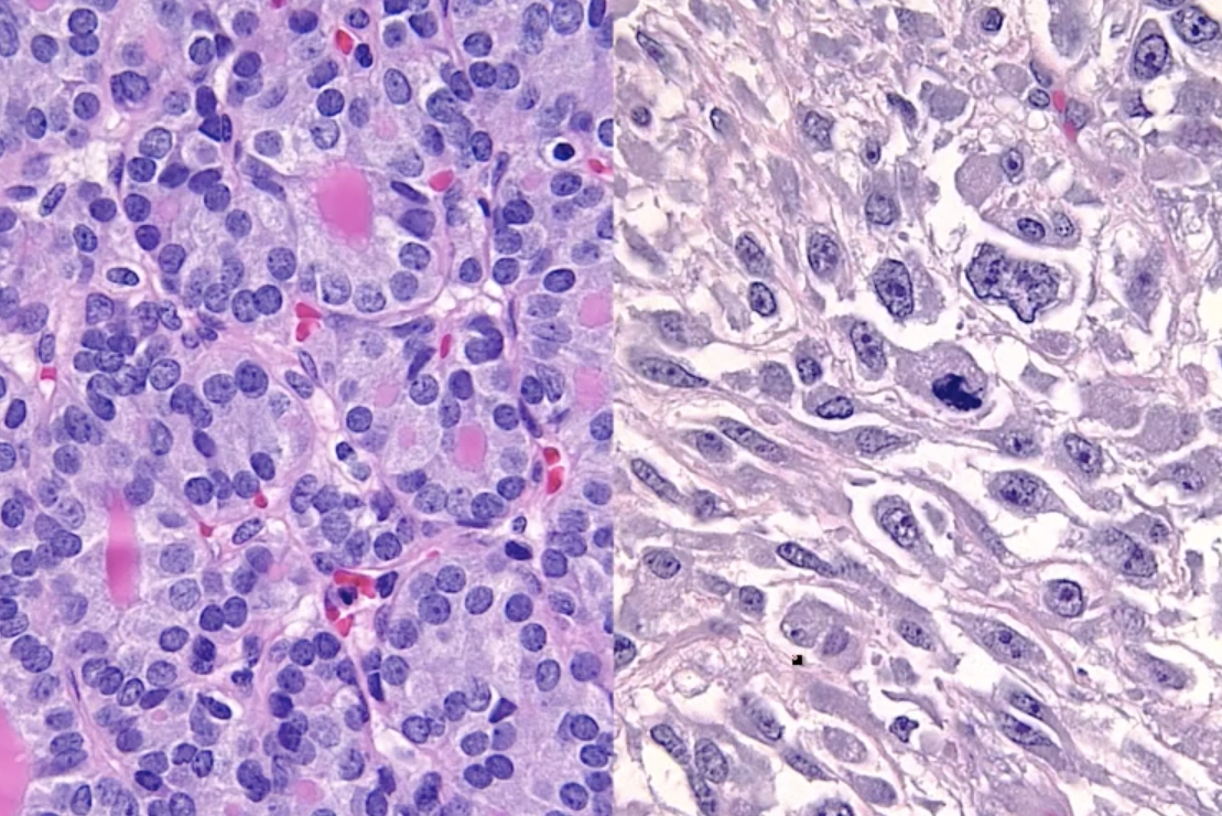 malignant: most cell comprised of nucleus: nucleus rapidly transcribing