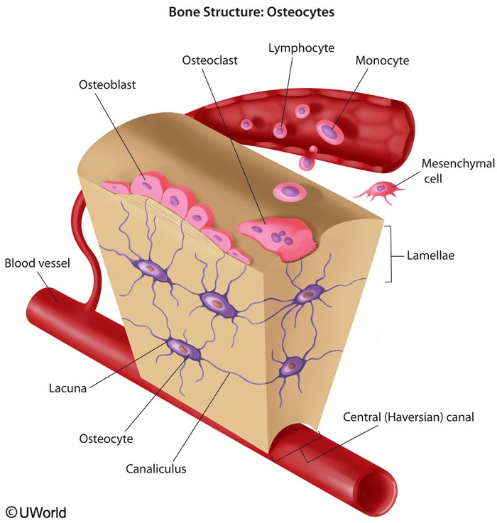 The osteocytes serve to maintain the structure of the mineralized matrix and control the short-term release and deposition of calcium (i.e., calcium homeostasis). The plasma calcium concentration directly dictates the metabolic activity of osteocytes, while parathyroid hormone and calcitonin indirectly influence their metabolic activity. Osteocytes can also sense mechanical stresses and send signals to modulate the activity of surface osteoblasts, thereby helping to regulate bony remodeling.