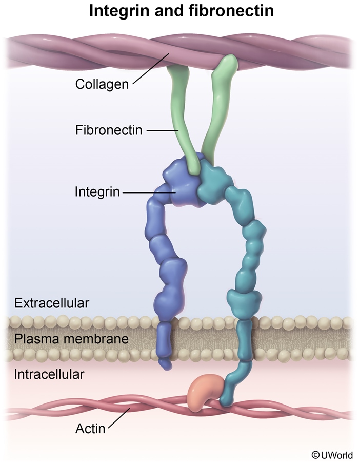(Choice B) Hemidesmosomes are half desmosomes that extend from the basal surfaces of keratinocytes in the stratified squamous epithelium to attach to the basal lamina.