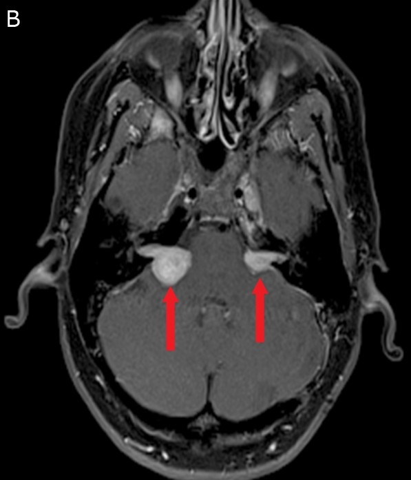 (Choice D) A mass lesion at the cerebellopontine angle is most commonly an acoustic neuroma (schwannoma of CN VIII). An acoustic neuroma could cause sensorineural hearing loss, vertigo, and tinnitus, but symptoms would be persistent and progressive rather than episodic.