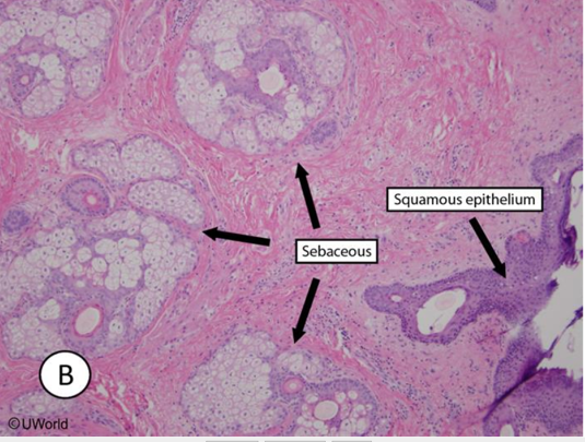 The lesion pictured is a xanthelasma, a type of xanthoma usually found on the medial eyelids. Hyperlipidemia and/or dyslipidemia can result in xanthomas (including xanthelasmas). Xanthelasmas are dermal accumulations of benign-appearing macrophages with abundant, finely vacuolated (foamy) cytoplasm containing cholesterol (free and esterified), phospholipids, and triglycerides.