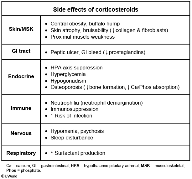 Corticosteroid receptors also have widespread physiologic effects, including those on circulating leukocytes and vascular endothelial cells. Neutrophil counts increase following administration of the drug as a result of "demargination" of neutrophils previously attached to the vessel wall. Therefore, neutrophil recruitment to fight infection in tissues is decreased, potentially contributing to increased infection risk.