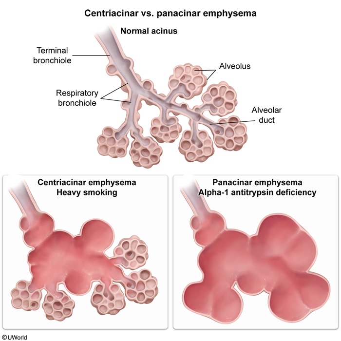 Emphysema causes hypoxia by dilating the alveolar air spaces so that there is insufficient contact between the airspaces and deoxygenated blood in the alveolar capillaries.