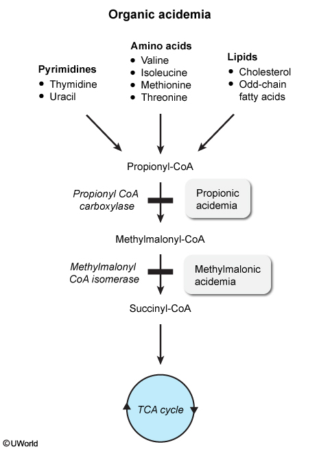 The patient described in the question stem is most likely suffering from a peroxisomal disease. Peroxisomal diseases are rare inborn errors of metabolism where peroxisomes are either absent or nonfunctional. Very long chain and some branched chain fatty acids cannot undergo mitochondrial beta-oxidation. These fatty acids are metabolized by a special form of beta oxidation (very long chain fatty acids) or by alpha oxidation (branched chain fatty acids such as phytanic acid) within peroxisomes. When peroxisomes are absent or nonfunctional, these fatty acids accumulate within the tissues. One example of a peroxisomal disease is Zellweger syndrome. In this condition, infants are unable to properly form myelin in the CNS. Symptoms of this disease include hypotonia and seizures as mentioned in the question stem as well as hepatomegaly, mental retardation, and early death within months of initial presentation. Refsum disease results from a defect in peroxisomal alpha oxidation and leads to neurologic disturbances in response to accumulation of phytanic acid within the body. Treatment of this disease is by strict avoidance of chlorophyll in the diet.