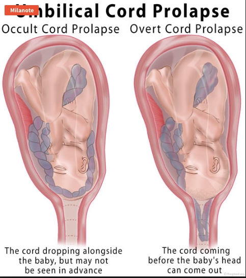 Umbilical cord prolapse a rare emergency where the umbilical cord descends alongside the fetus, or beyond the presenting part of the fetus. It is a life threatening condition to the fetus as blood flow through the umbilical vessels can be compromised, disrupting fetal oxygenation.
