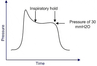 The plateau pressure is the pressure measured during an inspiratory hold maneuver, when pulmonary airflow and thus resistive pressure are both 0. It represents the sum of the elastic pressure and positive end-expiratory pressure (PEEP).