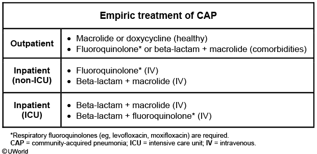 Treatment of Klebsiella pneumoniae community-acquired pneumonia includes third-generation cephalosporinsorfluoroquinolones.