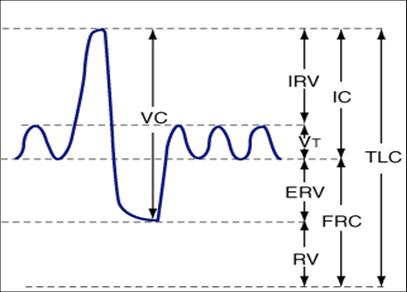 Total lung capacity is the sum of vital capacity plus residual volume (VC+RV). It is the total lung volume.
