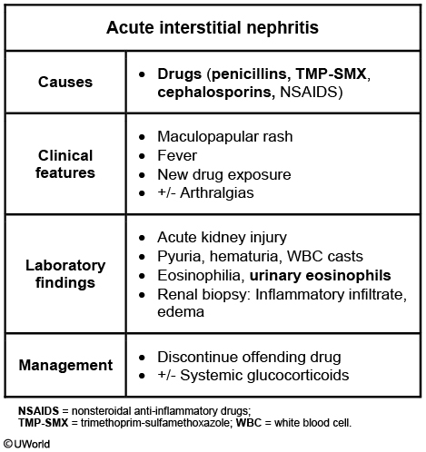 A history, physical, and lab findings are critical to finding the underlying cause of acute kidney injury (e.g. dehydration, medication use, urinary symptoms). It is important to note that AKI may present as oliguric, anuric or nonoliguric.
