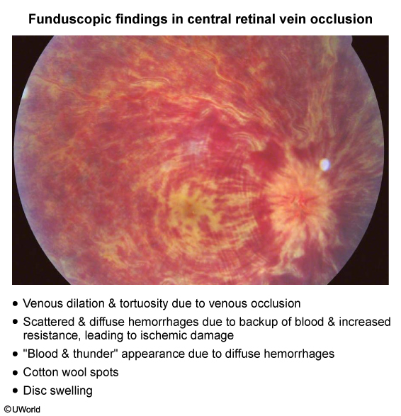 This patient with acute, unilateral, painless loss of vision has findings suggestive of central retinal vein occlusion (CRVO).