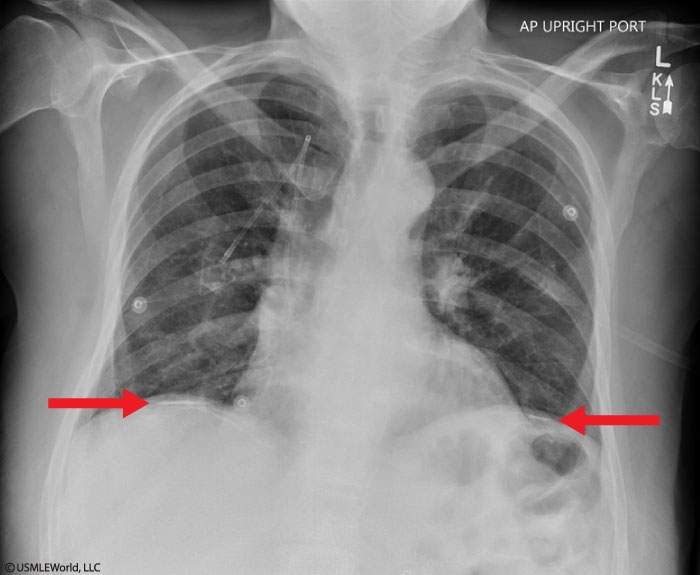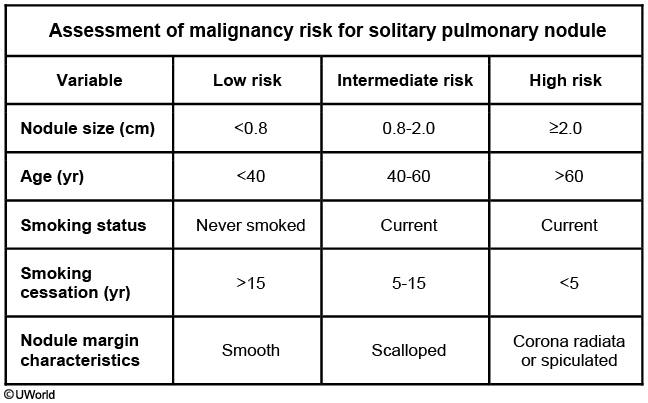 Asbestosis and bronchogenic carcinoma can present similarly, with most patients developing progressive dyspnea. However, patients with asbestosis can be asymptomatic for up to 20-30 years after asbestos exposure. Cough, sputum production, and wheezing are not typically present (unless there is concurrent chronic obstructive pulmonary disease). Physical examination frequently shows bibasilar, end-inspiratory crackles and fingernail clubbing as the disease progresses. Chest x-ray can show bibasilar reticulonodular infiltrates, honeycombing (cystic areas surrounded by interstitial infiltrates), and bilateral pleural thickening. High-resolution chest computed tomography typically shows subpleural linear densities and parenchymal fibrosis. Almost 50% of patients have pleural plaques, which can help differentiate asbestosis from other causes of pulmonary fibrosis. Imaging studies may also show signs of bronchogenic carcinoma.
