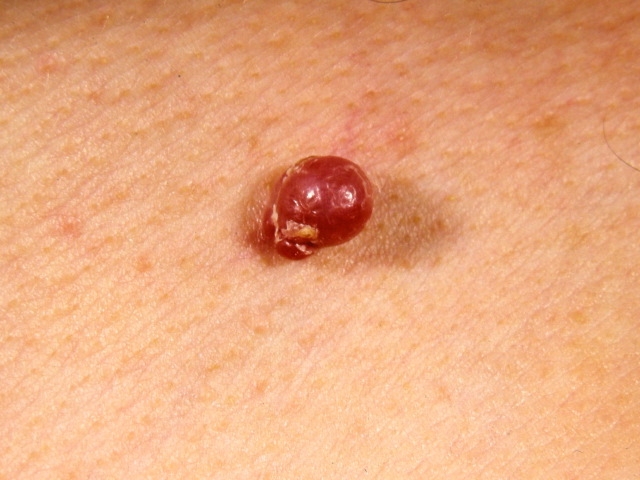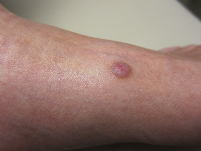Diagnosis is made clinically with examination showing a dome-shaped, firm, and freely movable cyst or nodule with a central punctum (small, dilated, pore-like opening). Excision is typically performed only for cosmetic reasons. Incision and drainage are occasionally needed for infected and fluctuant cysts that are painful and erythematous.